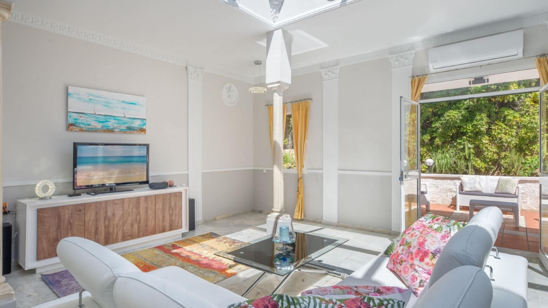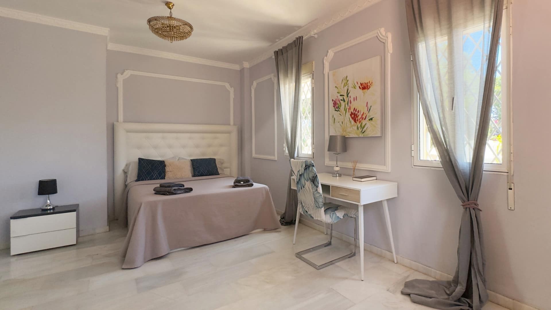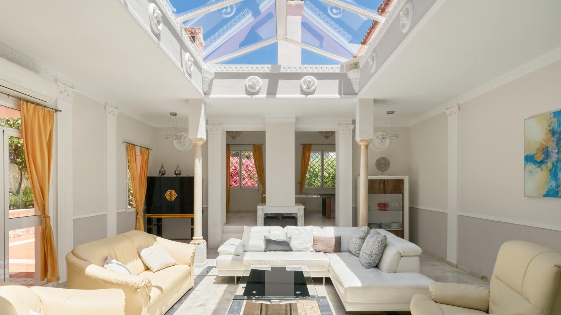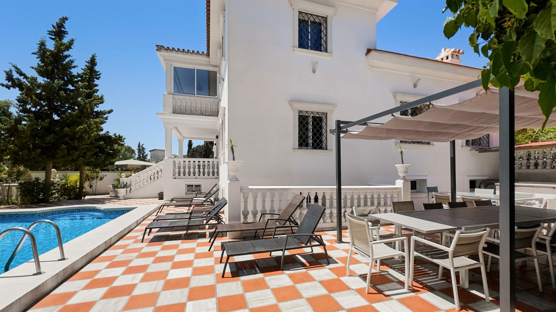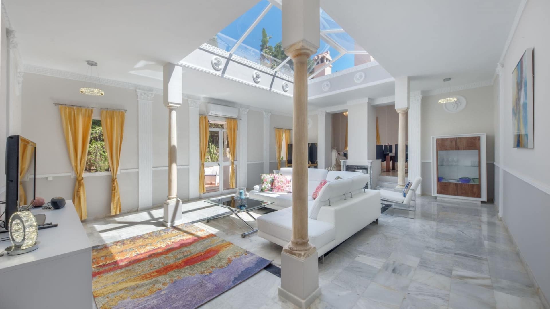 Magnífica oportunidad de negocio con una rentabilidad del 15% en una de las zonas más exclusivas de Marbella Este. La villa está registrada en Turismo de Andalucía y cuenta con varios años de actividad como alojamiento turístico, con un historial de datos demostrable. Además, existen varios proyectos en diferentes líneas de negocio que pueden desarrollarse según las preferencias de la persona o empresa interesada. Situada en la Urbanización Hacienda Las Chapas, una ubicación privilegiada con vigilancia 24 horas, pista de tenis, y rodeada de supermercados, restaurantes, un parque natural, campos de golf y el Puerto Deportivo de Cabopino. A solo 10 minutos del centro de Marbella, Puente Romano y Puerto Banús. Tiene acceso directo a la A7 en ambos sentidos, lo que facilita la movilidad hacia otras zonas de la Costa del Sol. Esta lujosa villa clásica, construida en 2001 y totalmente renovada, destaca por su exclusividad, elegancia y amplitud. Consta de un salón único cubierto por un techo de vidrio, con columnas romanas del siglo XII importadas expresamente y detalles muy peculiares, 10 dormitorios, 8 baños, gimnasio, zonas de piscina y barbacoa, varias terrazas, parking para varios coches e impresionante jardín mediterráneo con diferentes áreas. ¡No pierda esta oportunidad única! Contáctenos para más detalles y para organizar una visita.