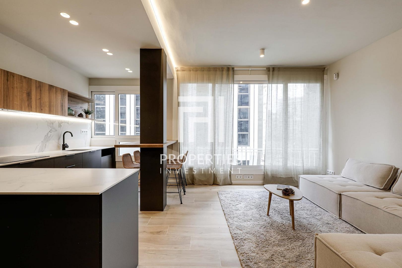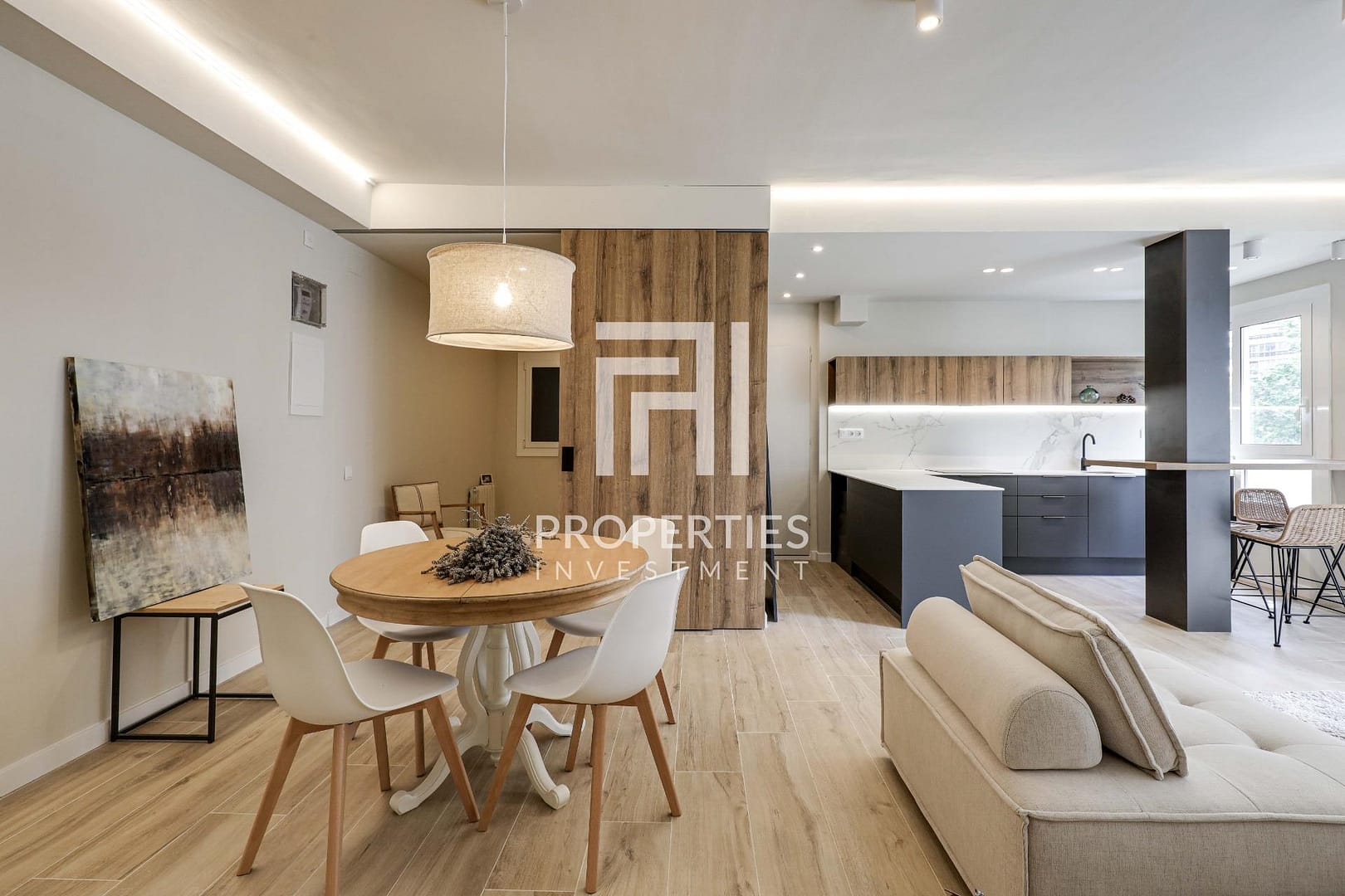 Pi Properties Investment presenta en exclusiva este magnífico inmueble RECIÉN REFORMADO y A ESTRENAR en la prestigiosa AVINGUDA DIAGONAL.~~Ubicado en una tercera planta real de una finca representativa del año 1970, el edificio cuenta con tres ascensores y servicio de conserjería tanto en horario de mañana como de tarde, lo que garantiza comodidad y seguridad.~~La vivienda dispone de 105 m² construidos inteligentemente distribuidos en un amplio salón-comedor exterior, que destaca por sus grandes ventanales, los cuales permiten la entrada de abundante luz natural durante todo el día. ~~La cocina abierta, moderna y equipada, se integra perfectamente en el espacio, creando una estancia diáfana y muy luminosa. Dispone de electrodomésticos integrados de alta gama y desde ella se accede a una práctica galería pensada como zona de lavado. ~~Completa la zona de día una estancia polivalente, semiintegrada al salón mediante una elegante puerta corredera, con múltiples posibilidades de uso: despacho, habitación de invitados, zona de lectura o incluso ampliación del comedor en ocasiones especiales.~~La zona de noche se compone de dos habitaciones dobles exteriores y muy luminosas, una de ellas con acceso directo a un balcón privado, además de una tercera habitación individual. La vivienda cuenta con dos baños completos, ambos con plato de ducha y acabados contemporáneos de alta calidad.~~En la reforma integral llevada a cabo destacan la inteligente distribución de los espacios, que ha permitido aprovechar todo el potencial del inmueble, así como la elegancia y calidad de los materiales empleados. Entre sus características caben destacar los suelos de parquet, calefacción por radiadores, sistema de alarma, persianas motorizadas, carpintería exterior con aislamiento térmico y acústico,… detalles que garantizan el máximo confort y comodidad. Además, todas sus piezas exteriores dan a una tranquila calle perpendicular a la Avda. Diagonal, sin apenas tráfico ni ruidos, lo que le aporta una tranquilidad inusual en una ubicación tan céntrica. El piso se completa con un trastero de 5m², ideal como espacio de almacenaje extra.~~Su localización en la exclusiva Avda. Diagonal es excepcional, a pocos pasos de la Plaça Francesc Macià, la Avda. Sarrià y L´illa. Este fantástico inmueble se encuentra rodeado de lo mejor que Barcelona nos ofrece como ciudad, una arquitectura única, centros de negocios, exclusivos restaurantes, boutiques internacionales, …, además de todos los servicios necesarios para la vida diaria, centros médicos, supermercados, colegios, … La oferta en transporte público es amplísima, infinidad de líneas de autobús y tranvía T1, T2 y T3 (Francesc Macià).~~¡No pierda esta oportunidad! ¡Solicite su visita!~