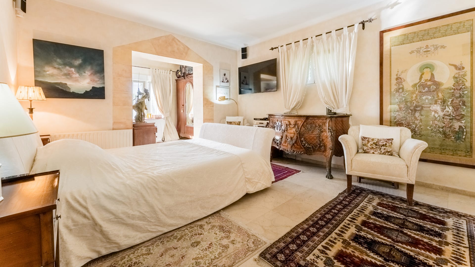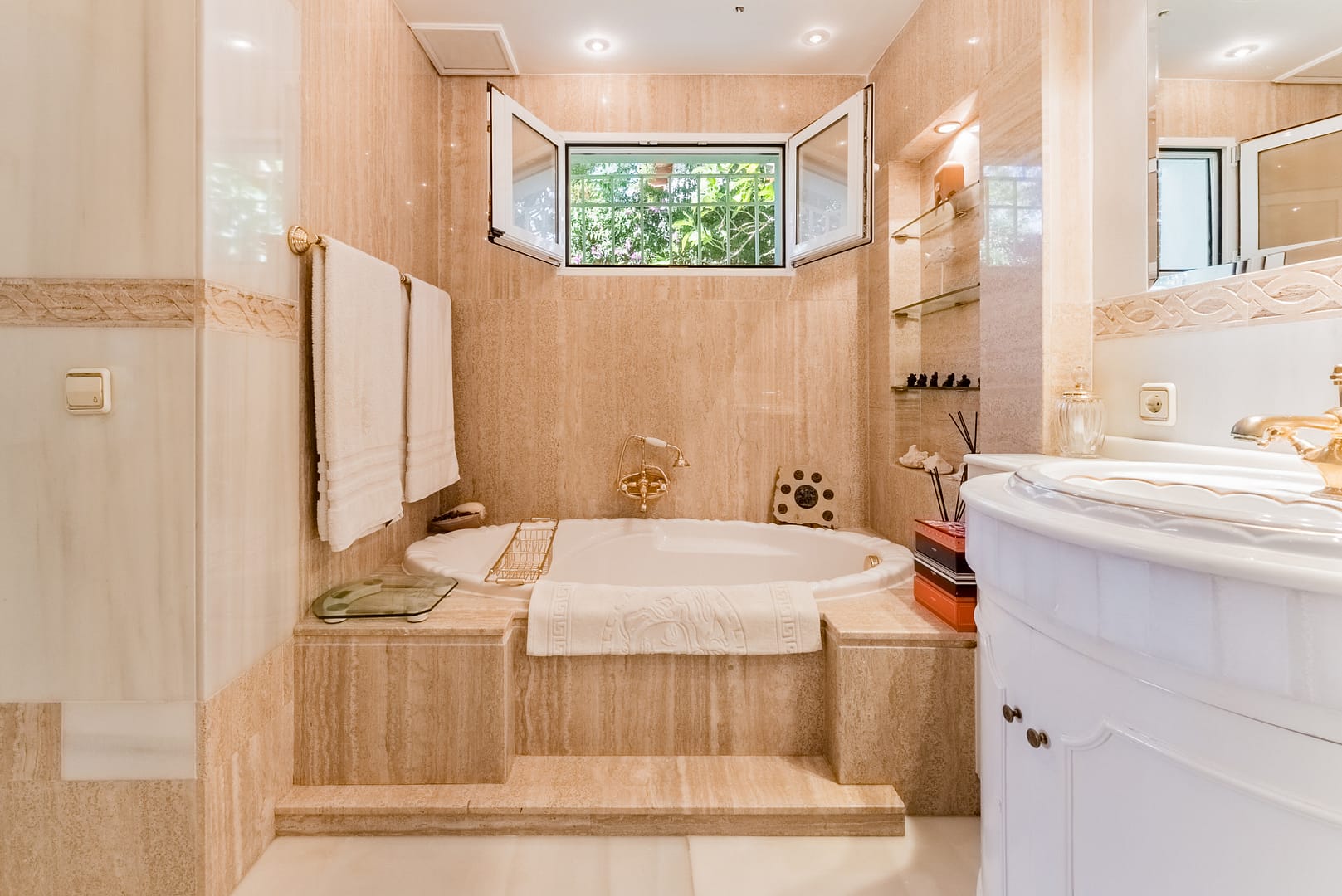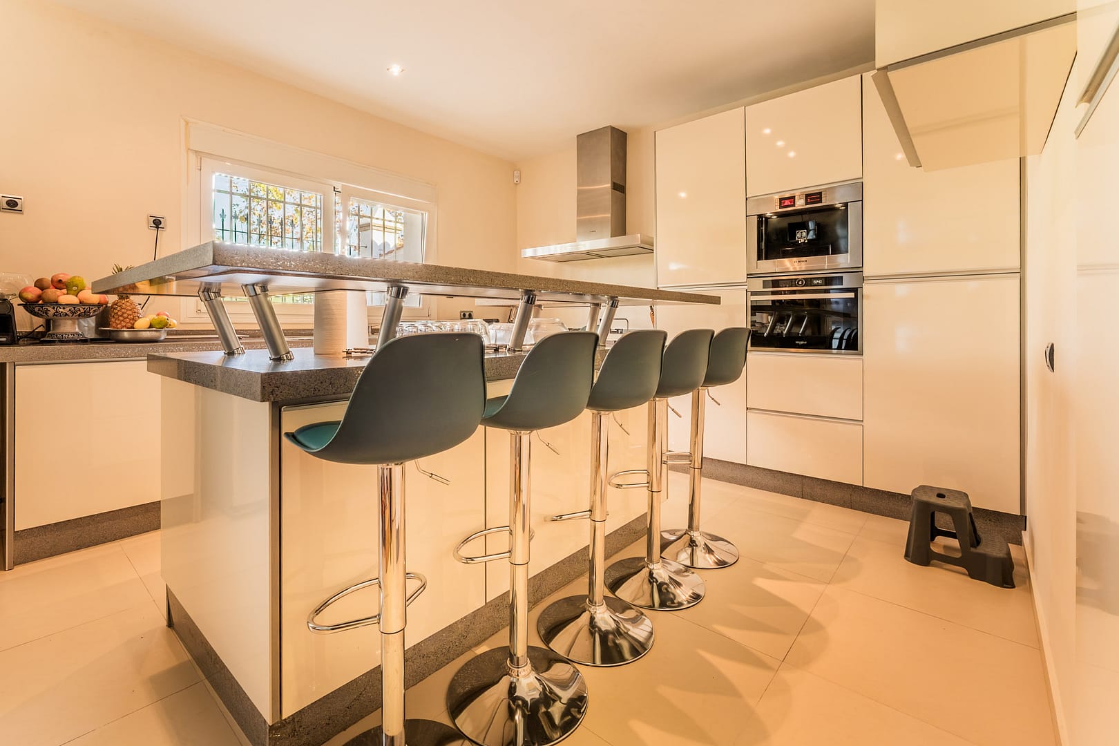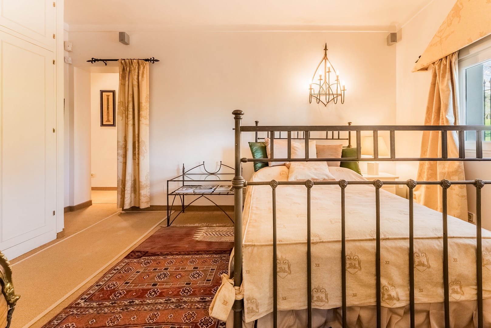 Maravillosa villa situada en primera línea del prestigioso campo de golf de Guadalmina Sur, directamente en el hoyo 18. Esta propiedad única combina privacidad, lujo y ubicación privilegiada en un área donde residen personalidades distinguidas, incluyendo un ex presidente de España. Situado en un tranquilo y seguro callejón sin salida, la propiedad se encuentra en una parcela de 801 m2 y tiene 686 m2 construidos (incluyendo terrazas) en una sola planta, diseñado con materiales de alta gama como travertino ibérico y macael blanco. Distribución y espacios La casa ofrece un amplio salón-comedor de más de 90 m2, tres dormitorios en suite, cocina totalmente equipada, zona de lavandería y sauna cubierta para cinco personas. Cada habitación ha sido diseñada para ofrecer comodidad, ligereza y elegancia, con acabados de primera calidad. Espacios exteriores y de ocio Disfrute de más de 300 m2 de terrazas y porches, ideal para disfrutar del clima mediterráneo y vistas al golf. El jardín tiene una piscina de agua fresca de 10 x 5 metros, perfectamente integrada en el ambiente natural. Equipo y seguridad La villa tiene un garaje cerrado y espacio para 4 vehículos adicionales, sistema de alarma con sensores de presencia, videoportador, puertas automáticas, riego automático de aspersión, calefacción por gasoil, carpintería Climalit con mosquiteros y barras de seguridad, así como un grupo de presión con un tanque de agua potable de 1500 litros y un tanque de gasoil de 1000 litros. Aspectos destacados Parcela: 801 m2 Superficie construida: 286 m2 habitable Terrazas: 400 m2 3 dormitorios, 3 baños, sauna, garaje cerrado Gran salón de 90 m2 Piscina privada y vistas panorámicas del campo de golf Guadalmina Sur
